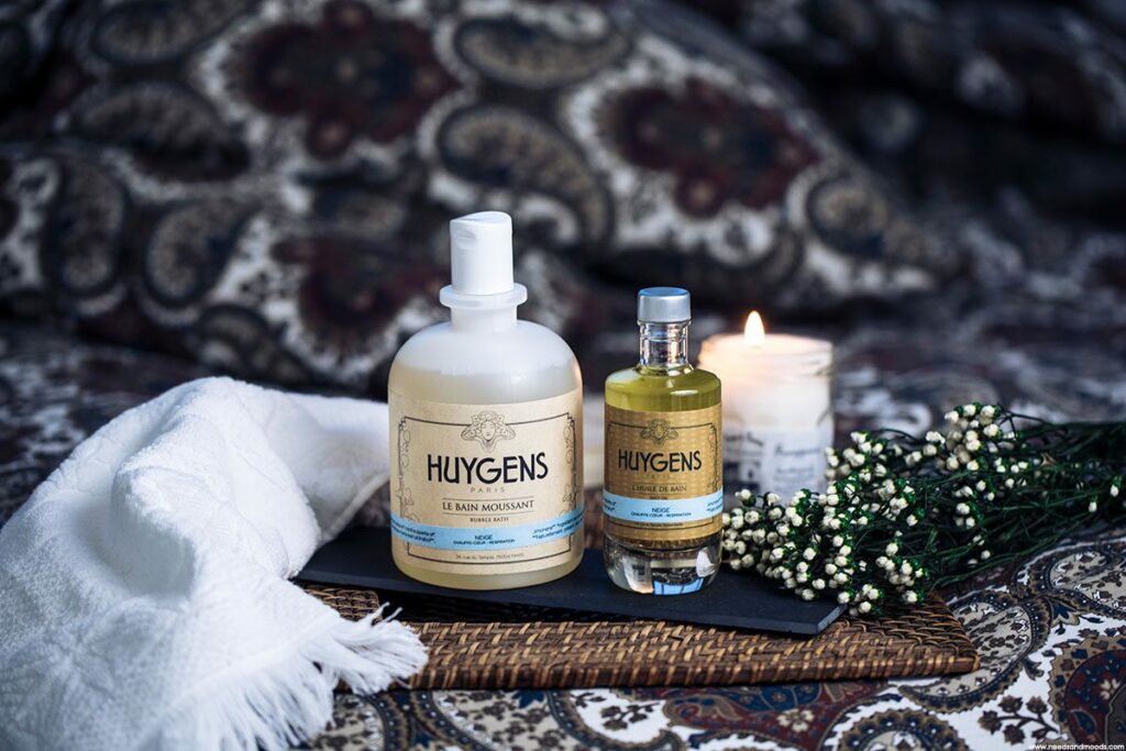 La marque se distingue également par son engagement envers la production locale : les produits sont fabriqués en France, ce qui réduit considérablement l’empreinte carbone de la chaîne de production. Les emballages en verre sont emblématiques de l’esthétique Huygens minimaliste, épurée, intemporelle.